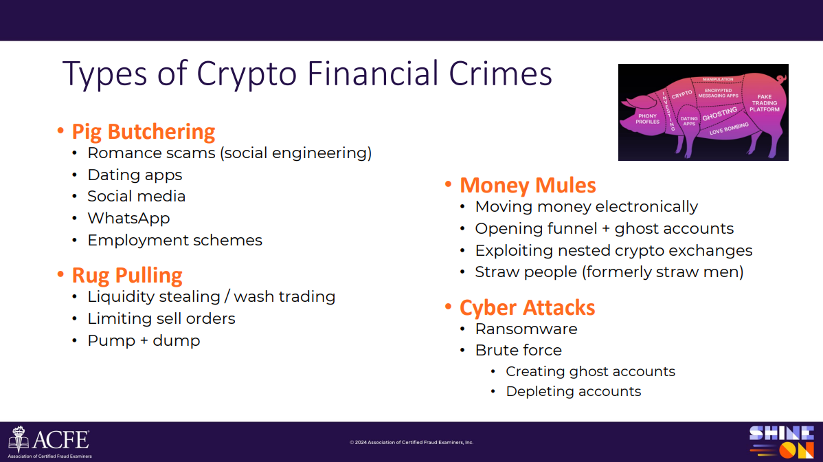 Miranda highlighted a wide range of crypto financial crimes that fraudsters employ, further proving the need for everyone across the fraud ecosystem to receive training on cryptocurrencies and crypto transactions.